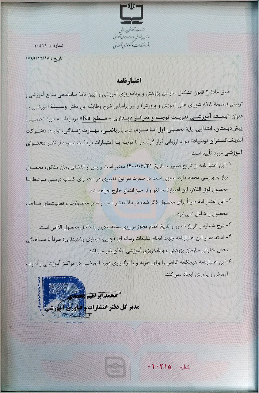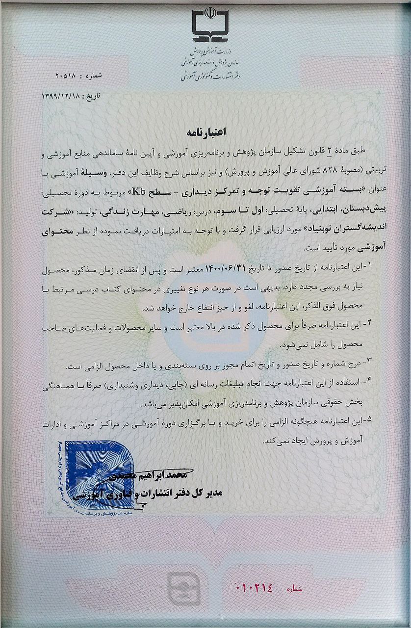 اعتبارنامه ها و تاییدیه علمی دوره تقویت توجه و تمرکز موسسه نوبنیاد