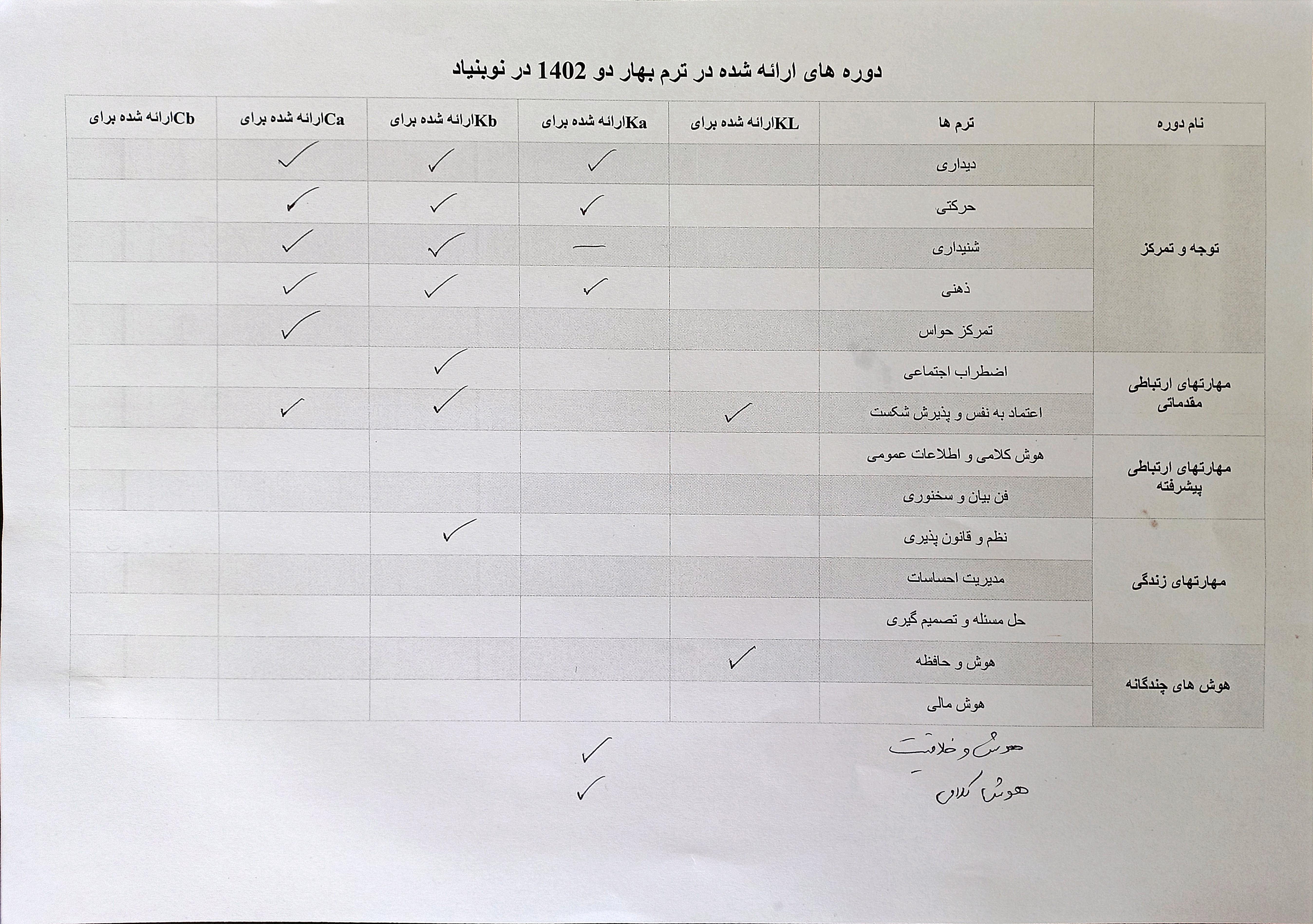 دوره های ارائه شده در ترم بهار ۱۴۰۲ موسسه آموزشی و پرورشی نوبنیاد به شرح زیر است :